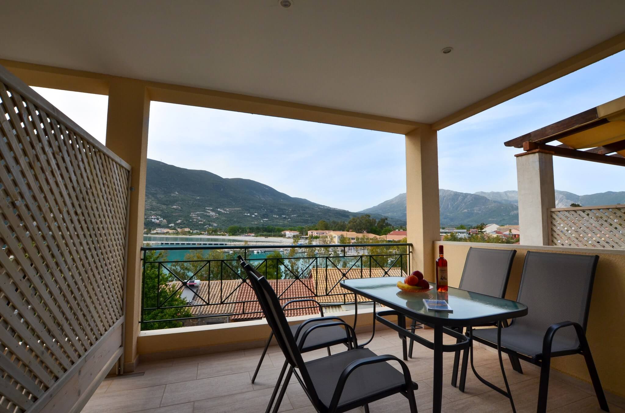 Enjoy the sunset on the furnished balcony overlooking the Ionian Sea.
